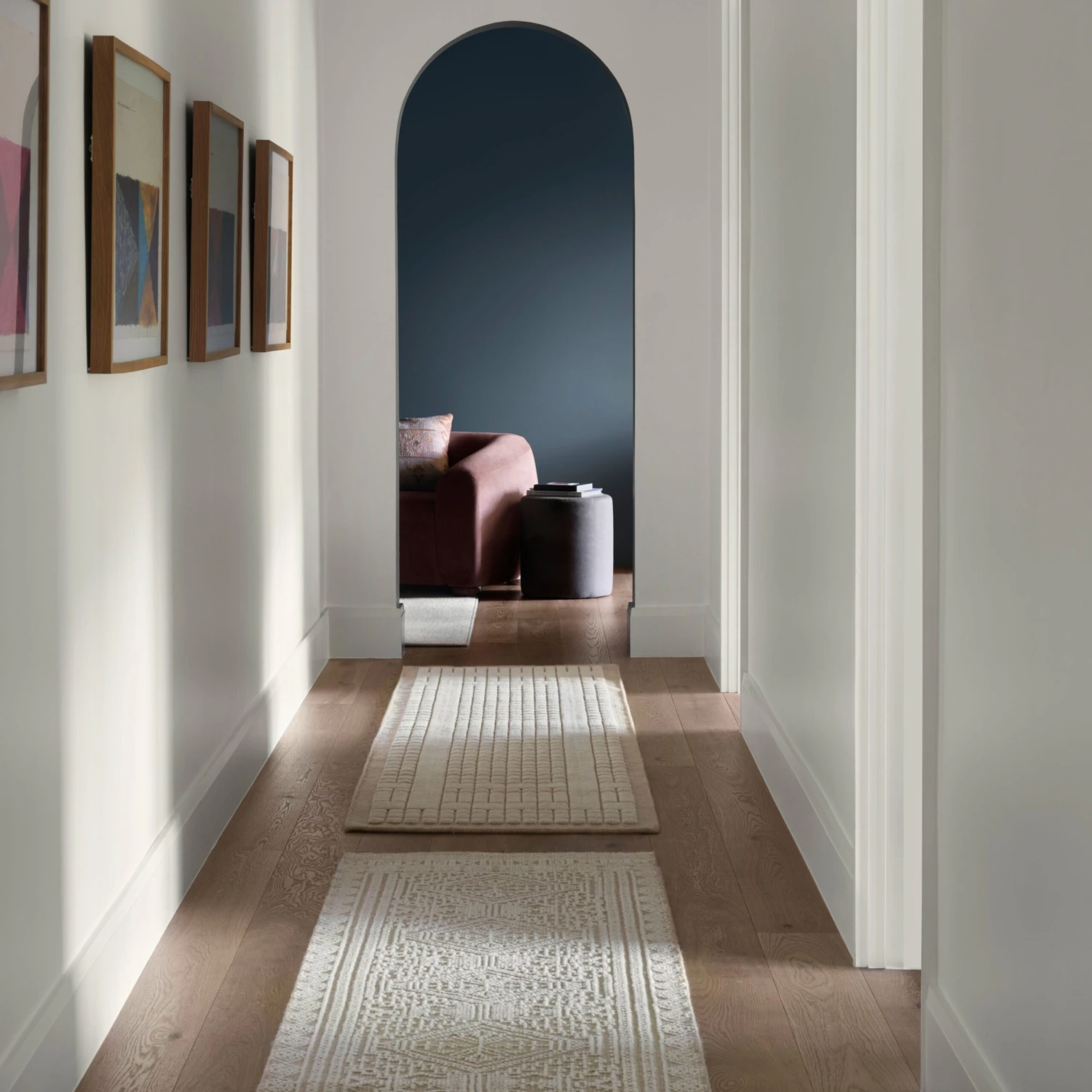 Your favorite cozy sweater, now available as a rug. Subtle stripes of undyed wool set the backdrop for this textural rug which adds a warm, welcoming foundation to your space. Natural, marled tones create a minimal look that works perfectly from your living room to the guest room.