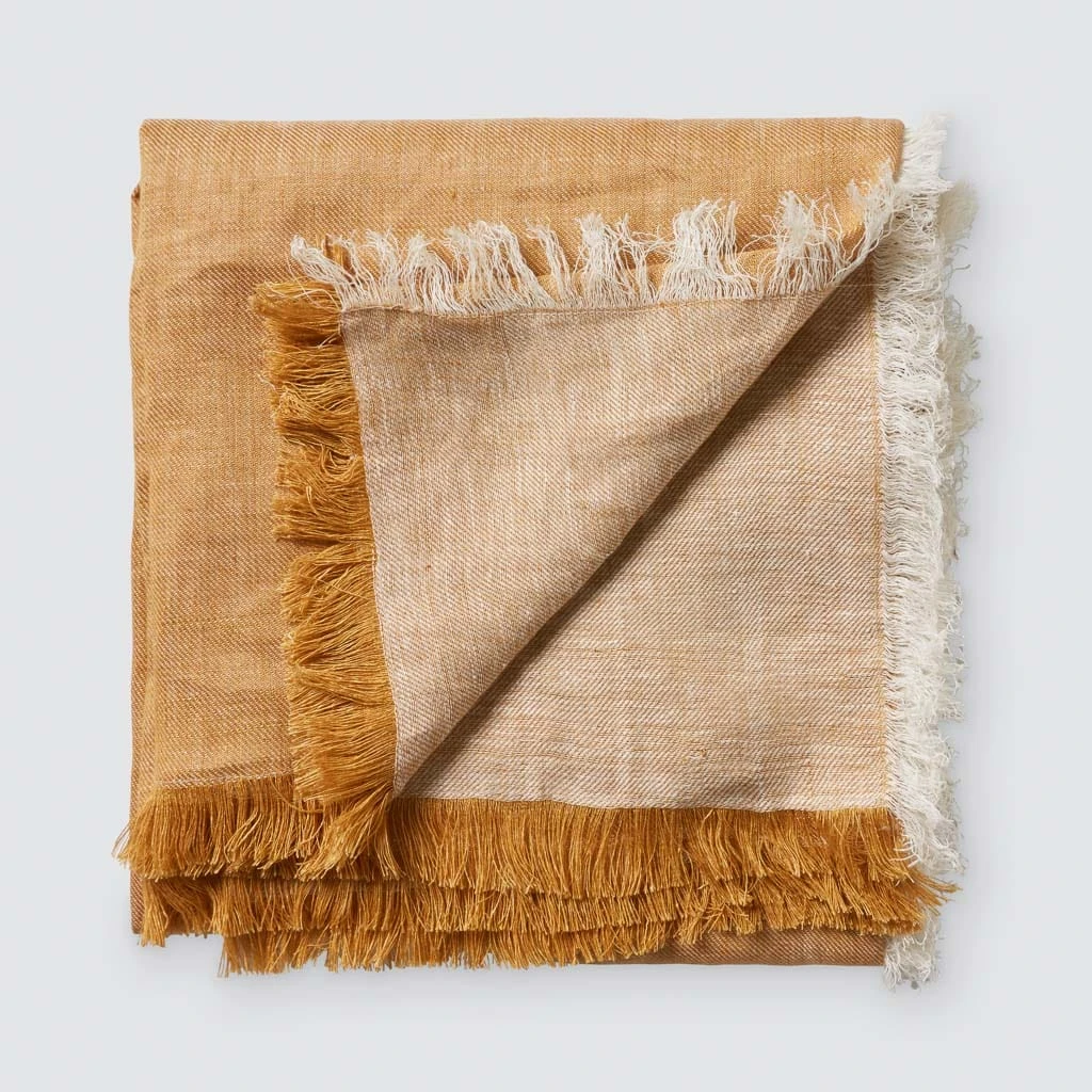 Relaxed linen. Eyelash fringe. Handwoven texture. Add a laid-back, organic feel to your space with this beautiful linen bed blanket (fully covers a queen or king size bed).