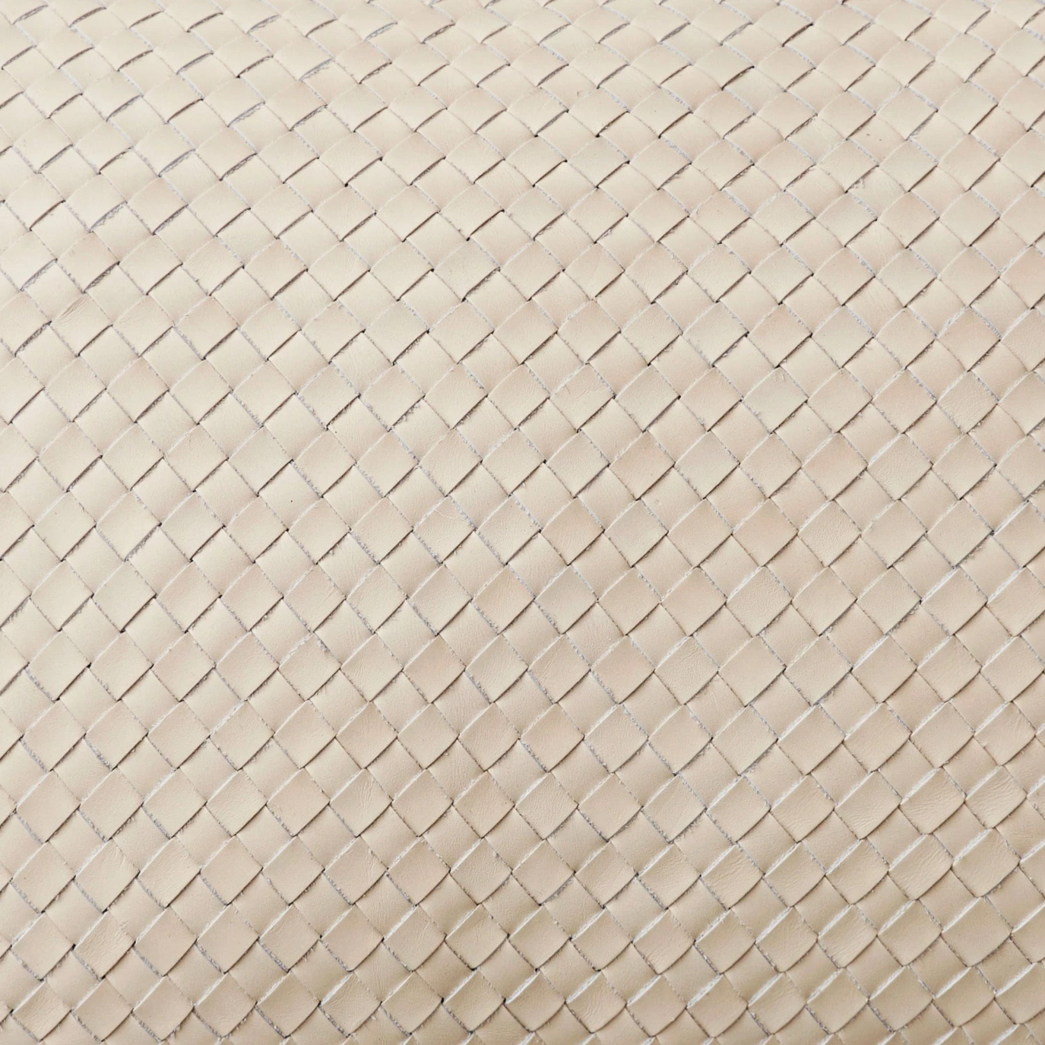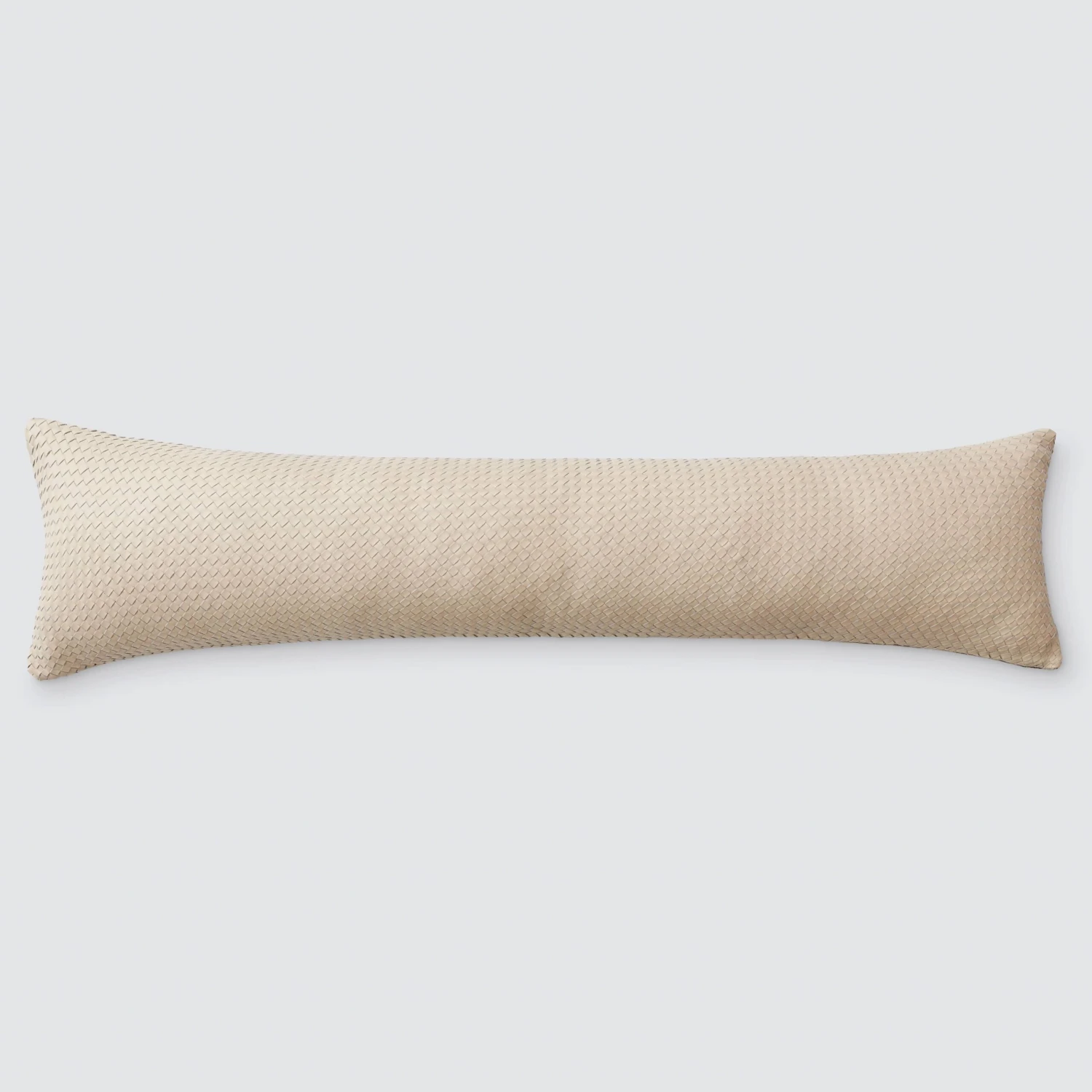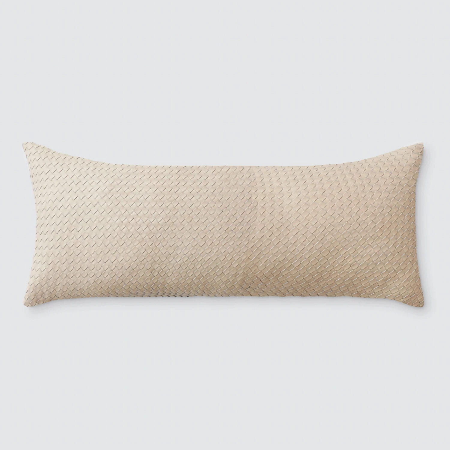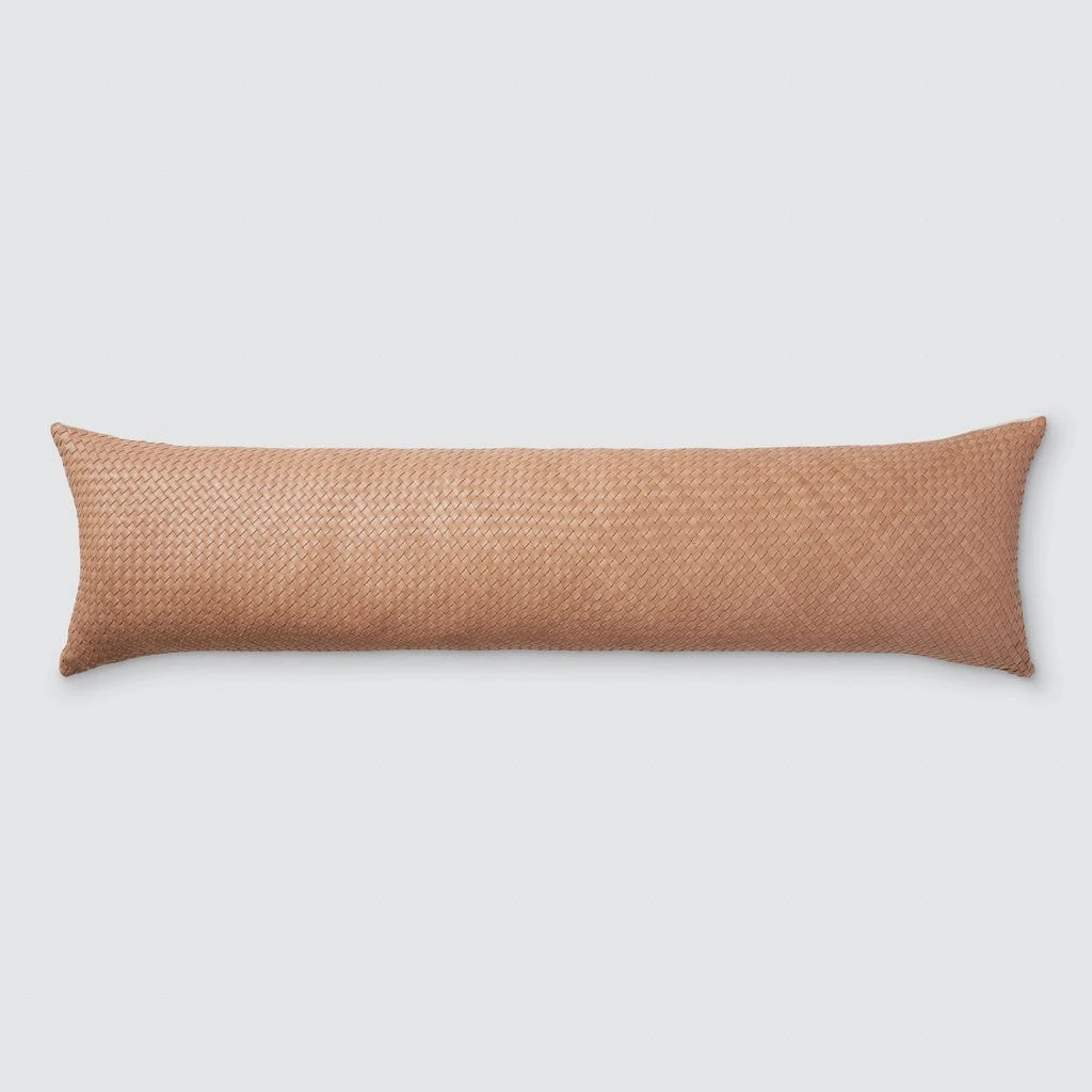 Woven from vegetable-tanned leather from Kolkata, this accent pillow instantly elevates the look of any pillow combination with its warm tan hue and luxe texture. With its dimension and detail, it makes for a luxe layer on any bed or couch setup.