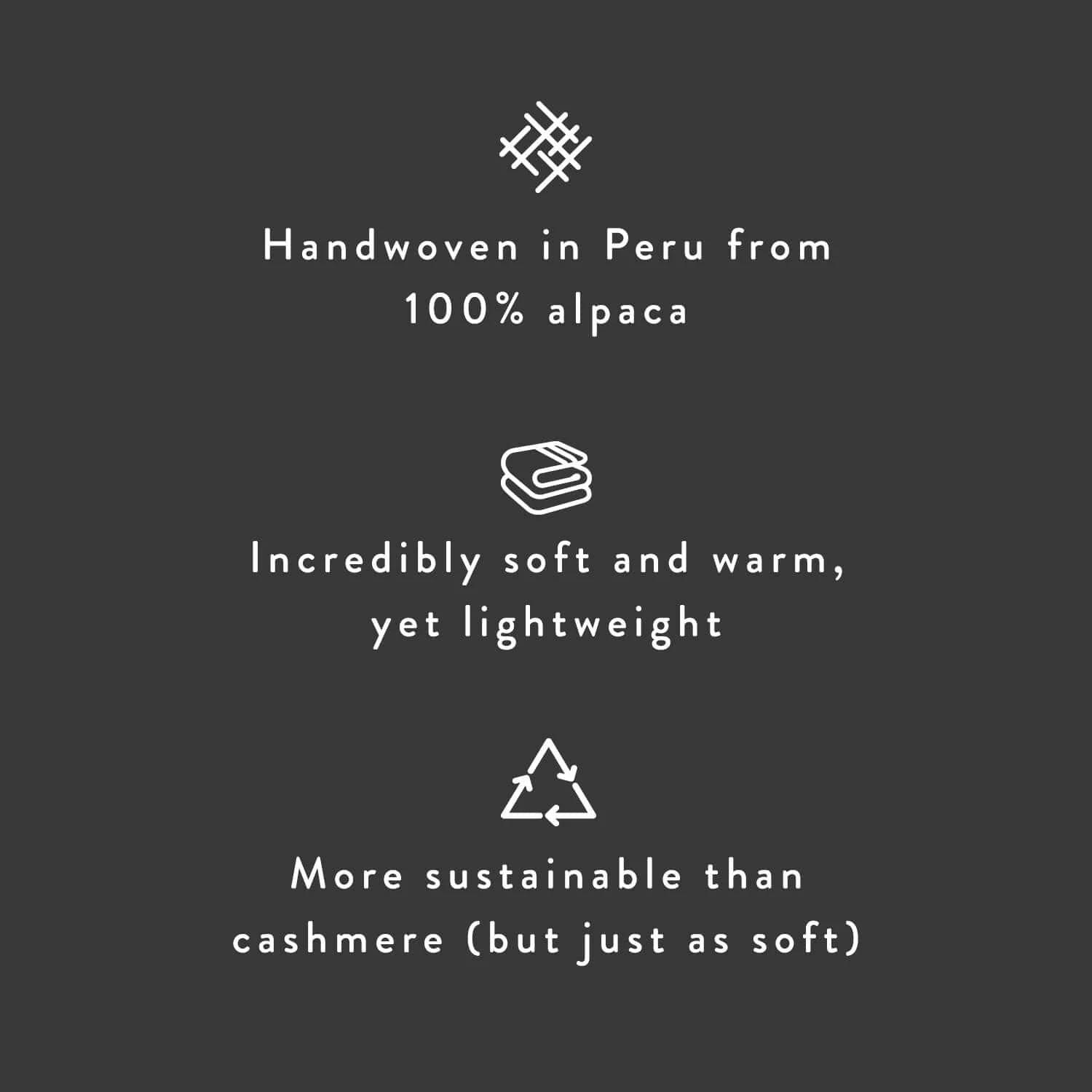 Handcrafted by master weavers in a quiet mountain village in the Peruvian Andes, each throw takes about a week to complete. All made exclusively in a fair trade environment.