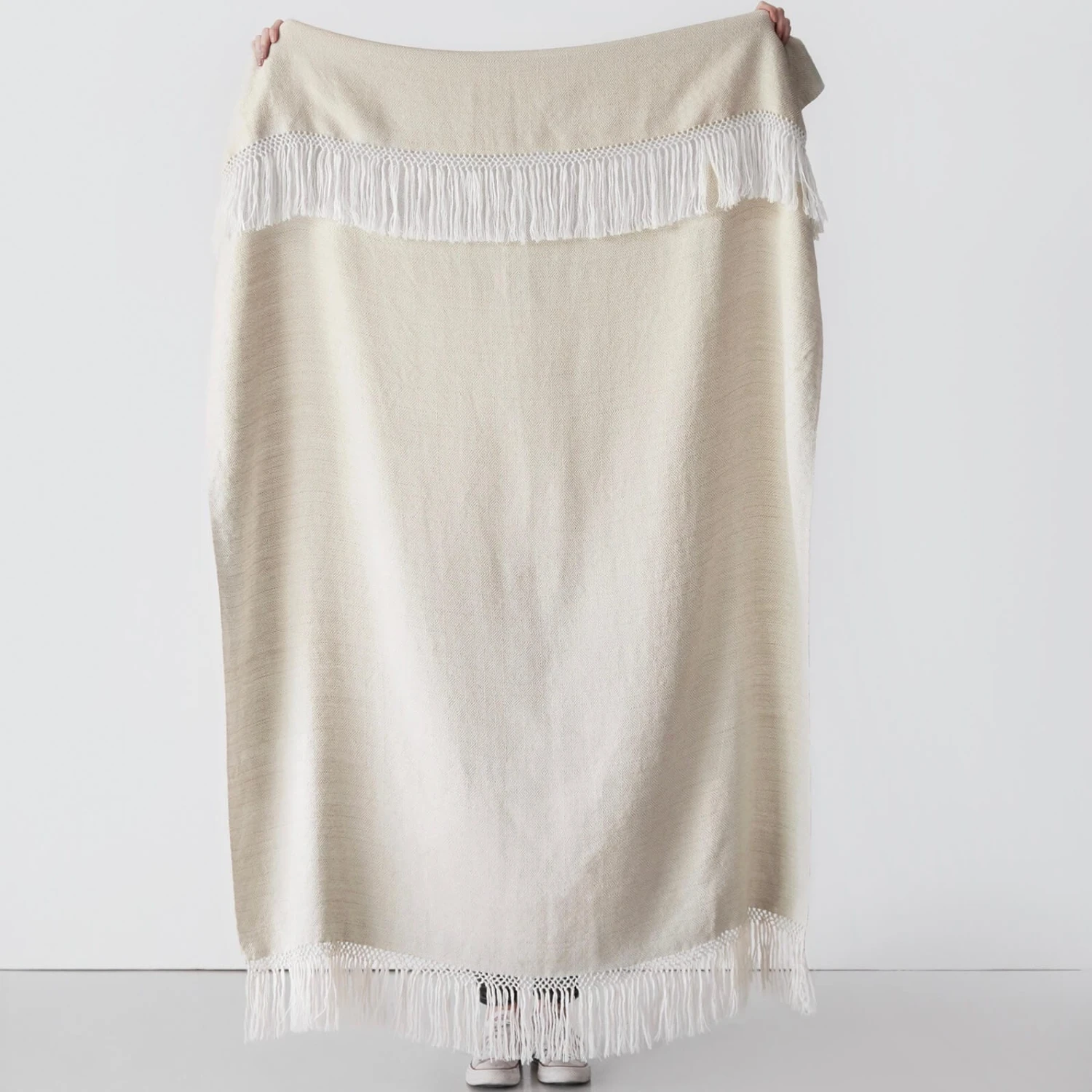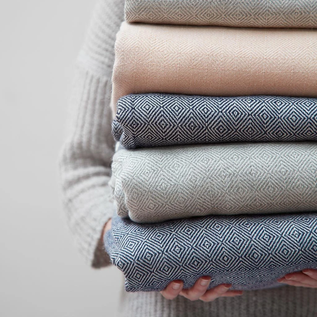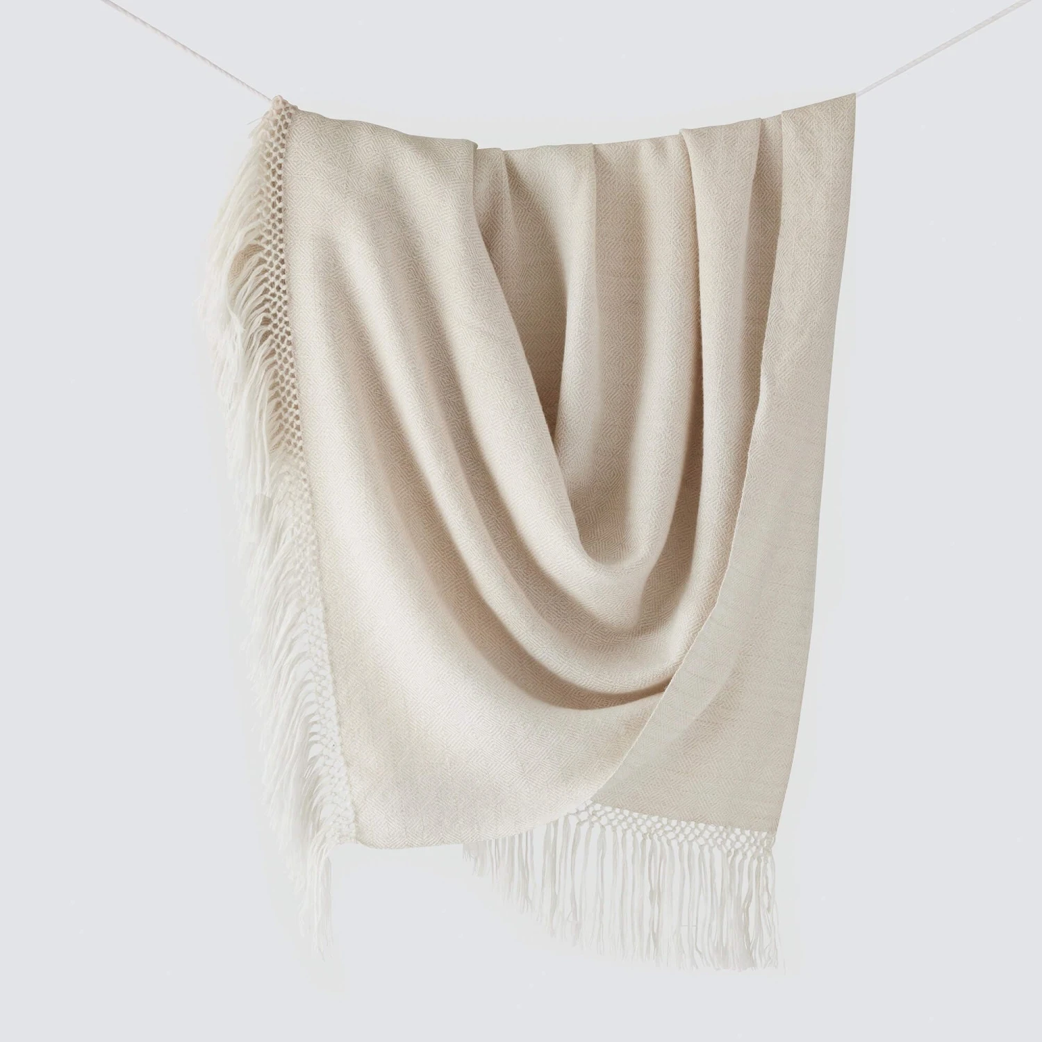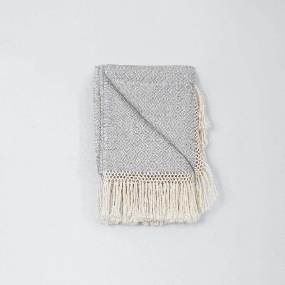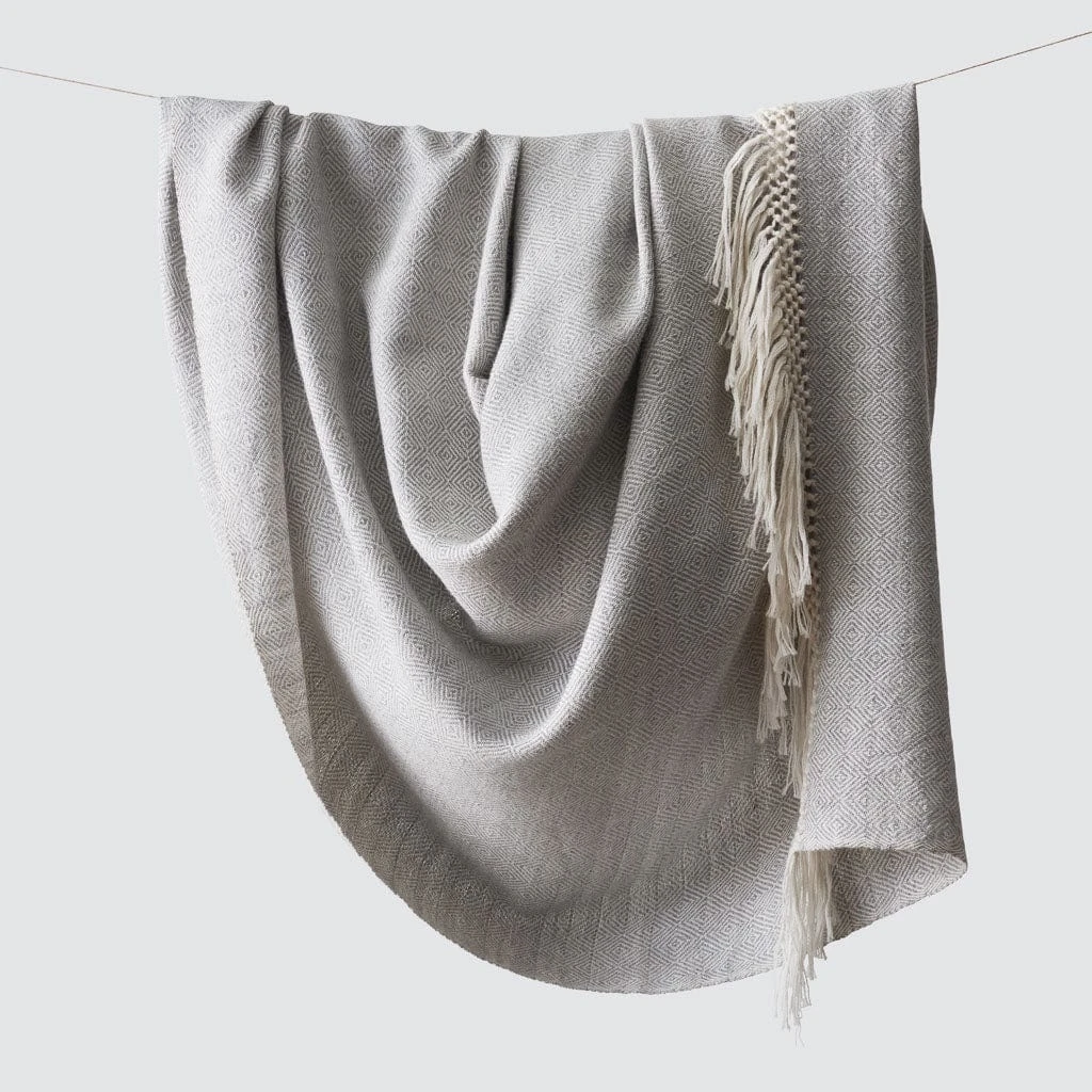 Hand-loomed using an old-world technique of concentric diamond patterns, this baby alpaca throw is oh-so-soft. Featuring soft, subtle hues and knotted fringe, it’s as elegant as it is warm and cozy.