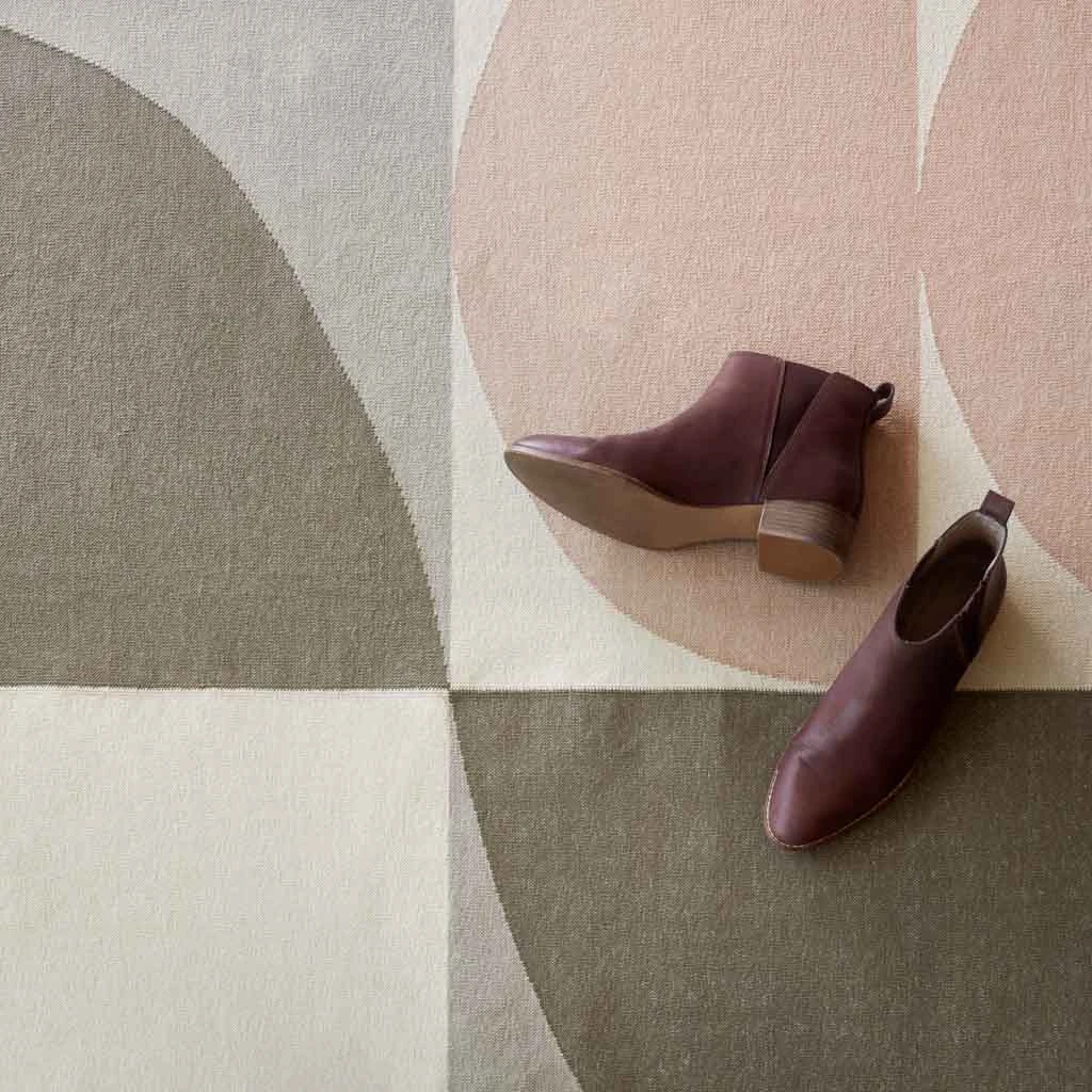 Handwoven horizontally on the ground to achieve maximum precision, each rug is made from 100% cotton that’s dyed and spun in-house. From prepping the yarn to weaving, washing, and finishing, each rug is made in a fair trade working environment in Jaipur, India.