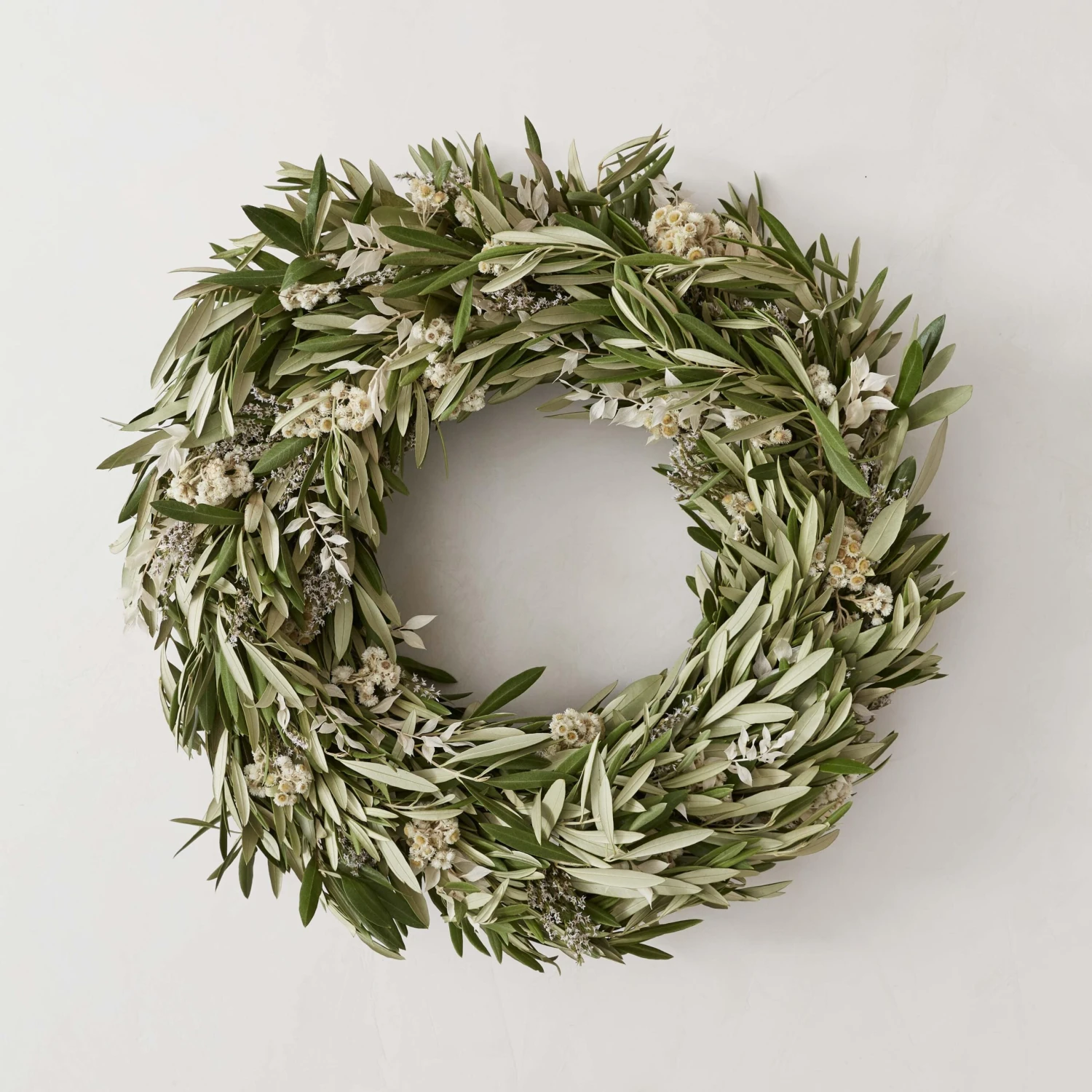 If your guests haven’t knocked yet, they’re probably still outside enjoying the natural beauty of this one-of-a-kind wreath. Weaving together fresh olive leaves with dried florals, each stunning piece is crafted with botanicals from the Pacific Northwest. A warm welcome for any occasion, each piece is perfectly styled on your door or over your mantel.