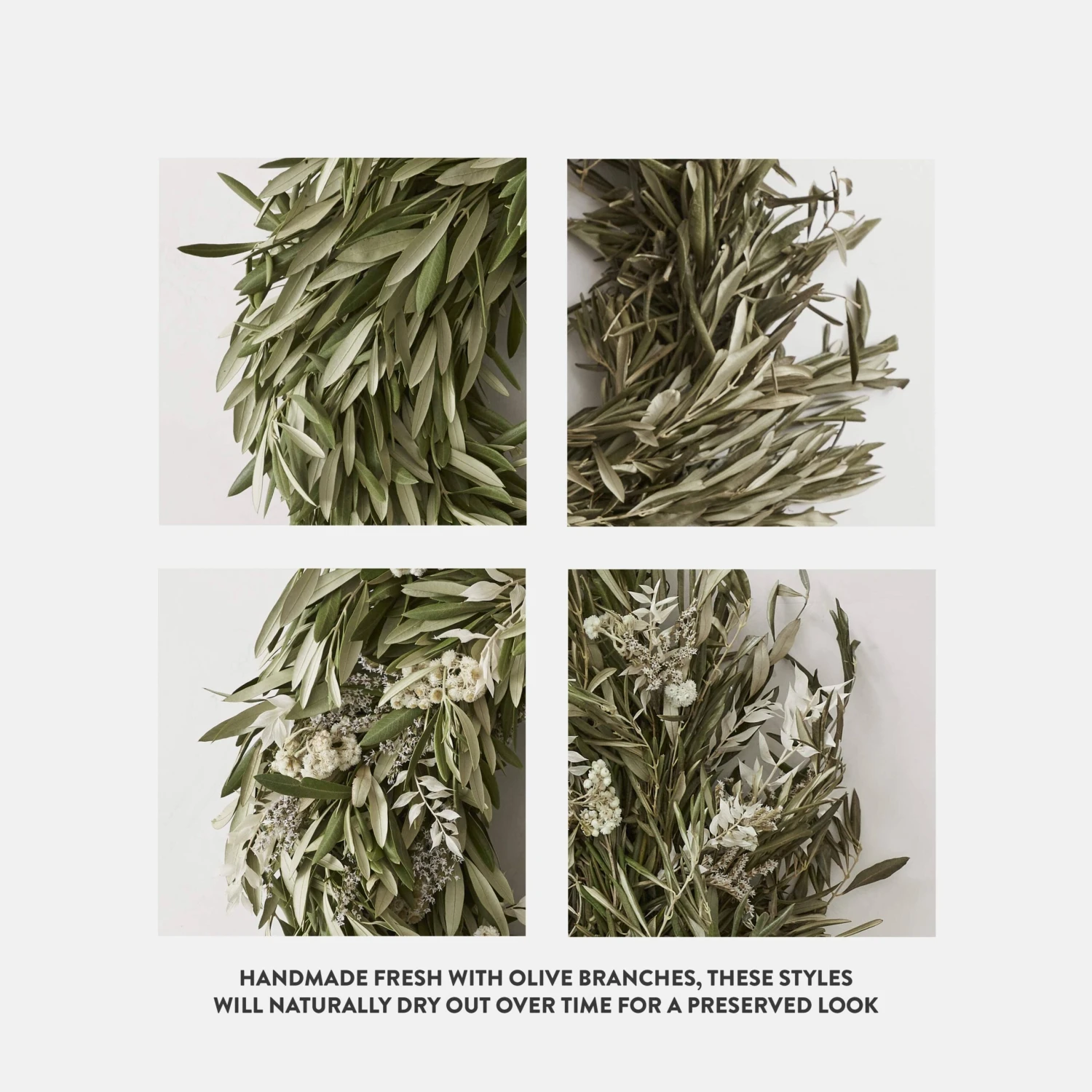 This garland is made fresh with live olive branches and will dry out over the course of a few weeks. Soak in water to revive its appearance, or enjoy the natural look as it dries.