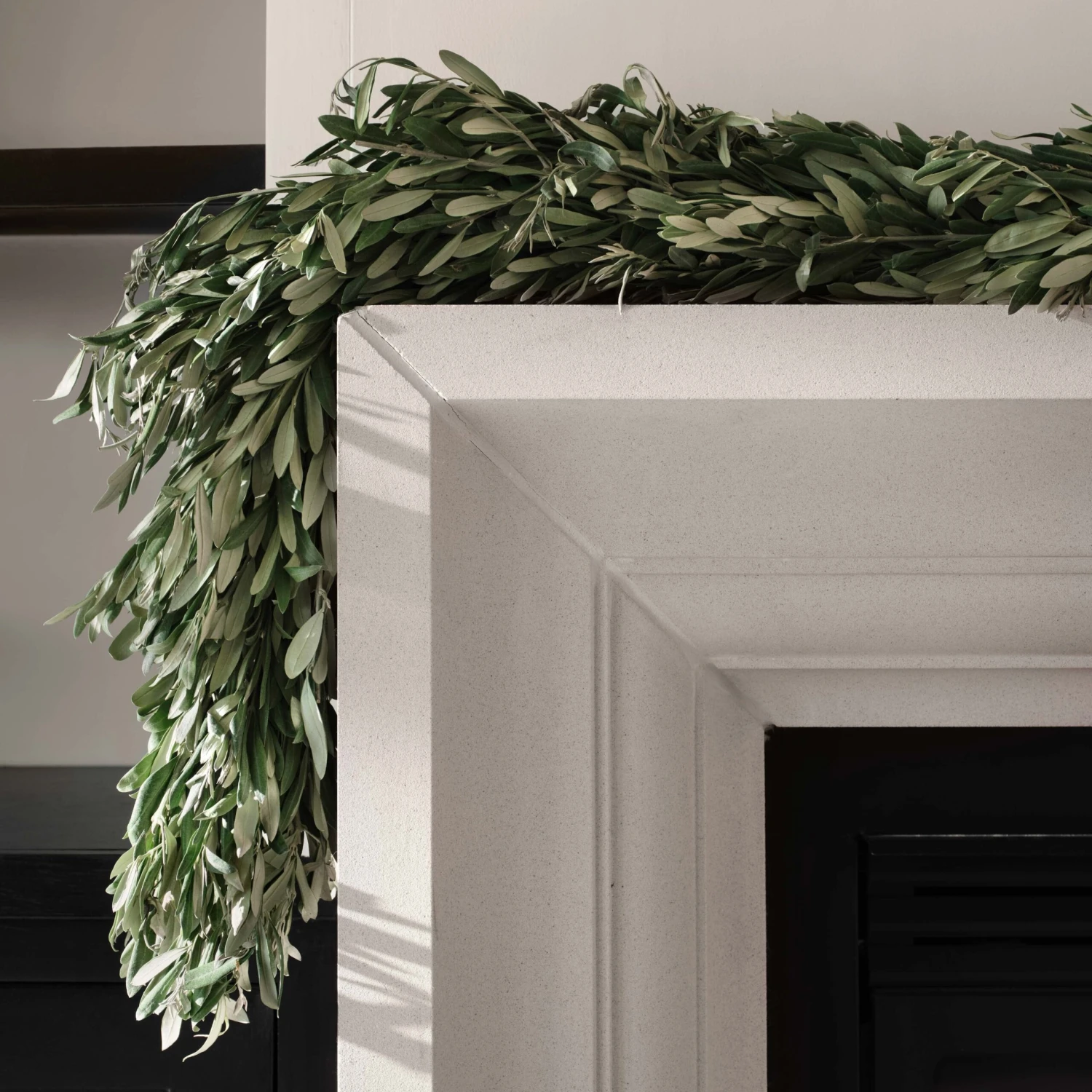 Ditch the firs. Put a modern spin on a timeless classic with this lush, elegant garland, crafted from fresh olive leaves from the Pacific Northwest. Long enough to liven up any space, each piece is sure to impress your guests all season long.