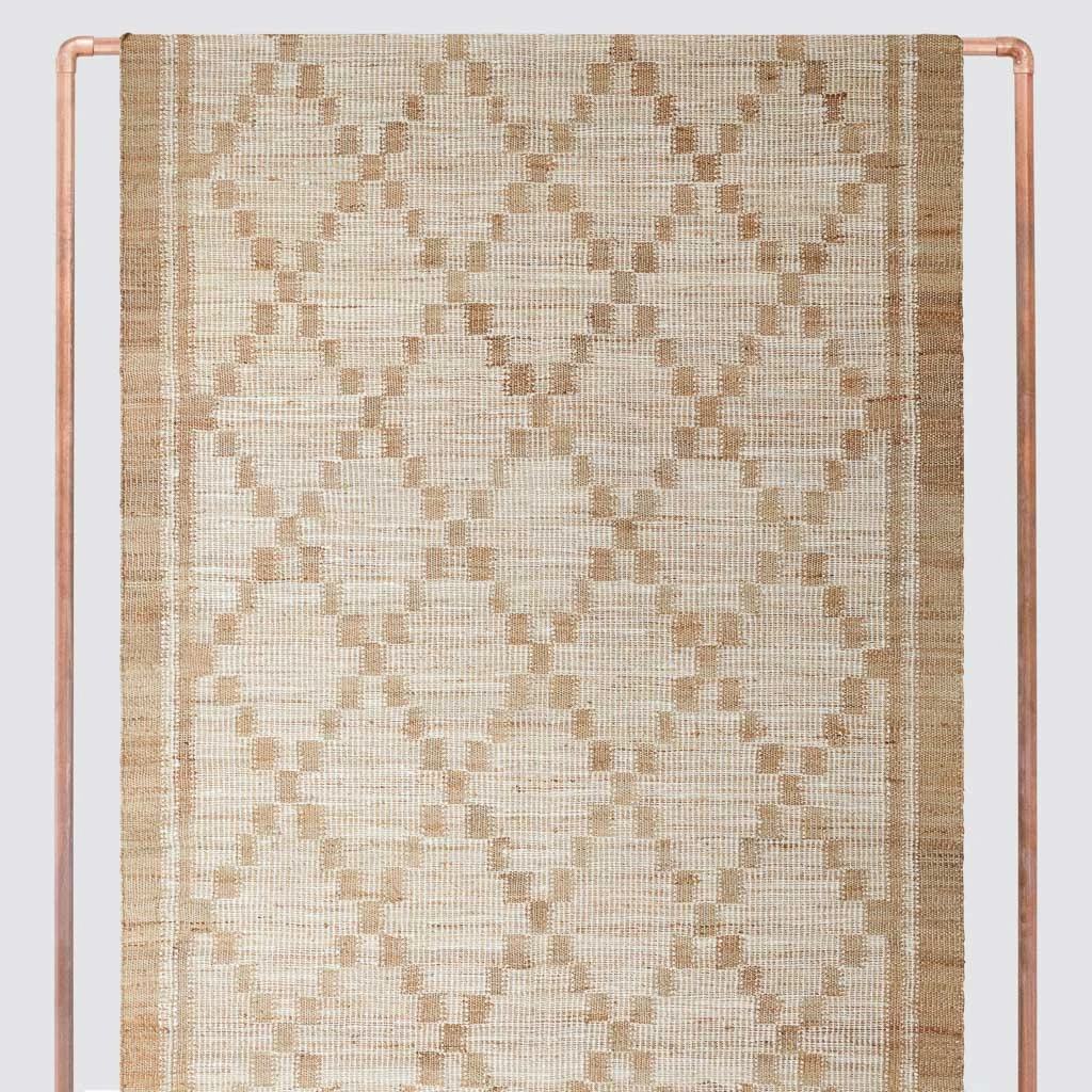 More pattern-based than our traditional jute rugs, this durable flatweave blends blonde and natural jute to create an allover diamond look that’s sure to stand out. A natural work of art, this versatile, lightweight area rug can be styled in a family room or as the foundation for a study.