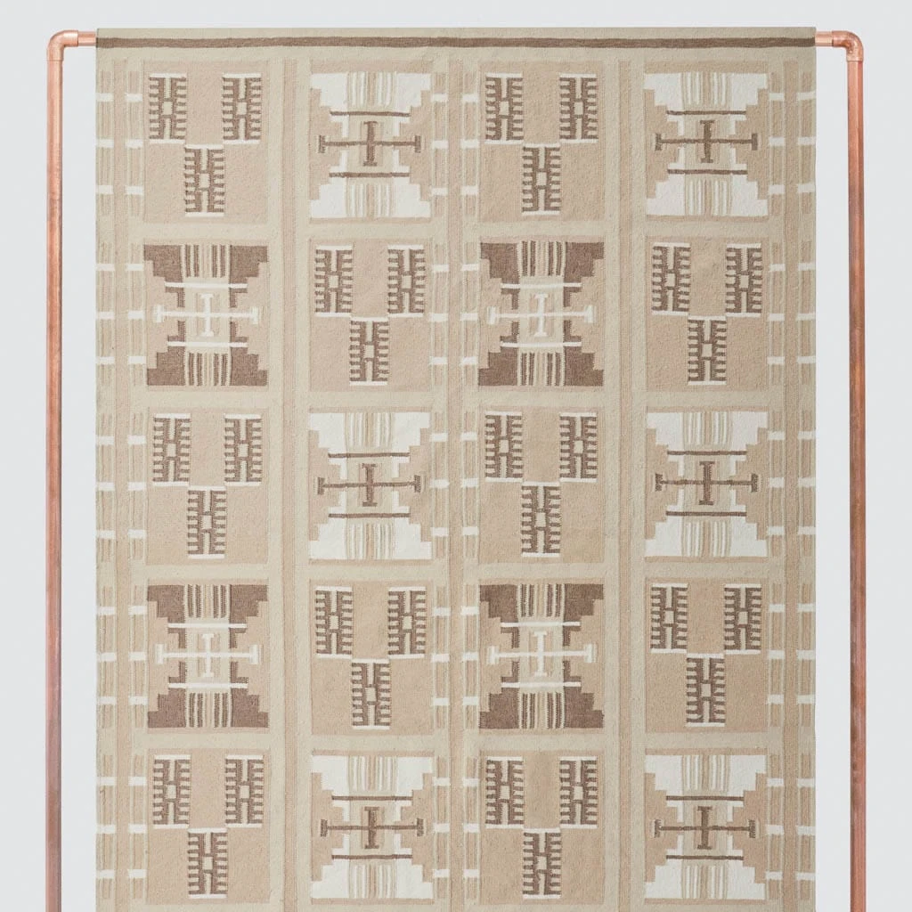 Inspired by the beauty of traditional Indian textiles, this effortlessly cool flatweave rug combines geometric shapes and clean lines to create a bold alternating pattern with subtle contrast. Woven with warm shades of sand and taupe, this area rug is the perfect choice for a living room or guest room. Pairs well with Aventura or Isidora throw pillows.