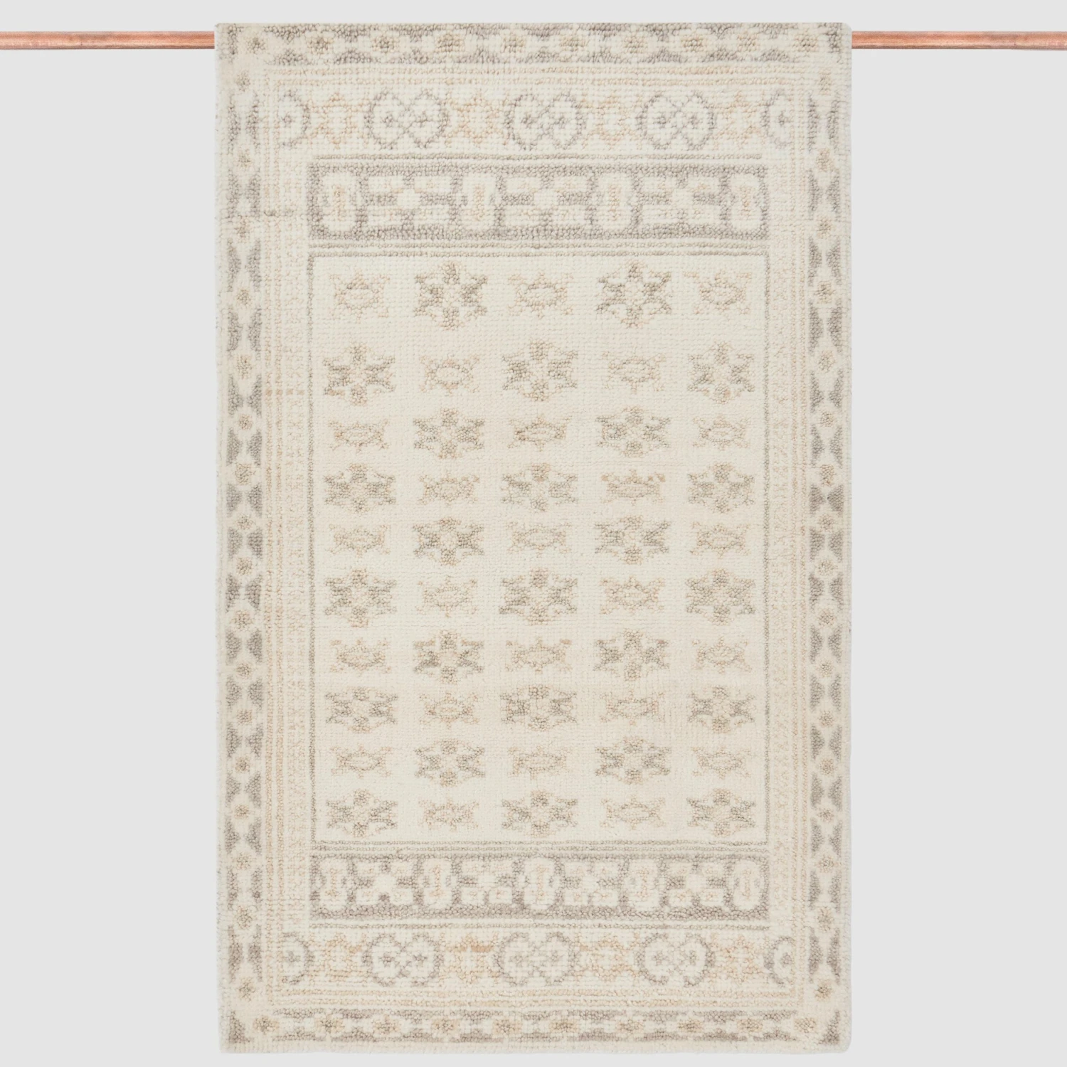 You’ve just found the perfect accent. An understated blend of subtle, earthy neutrals, this hand-knotted rug plays perfectly in any space. Crafted with an intricate pattern of sunbursts inside layered borders, each rug is an effortless addition to a kitchen, home office, or a quiet nook.