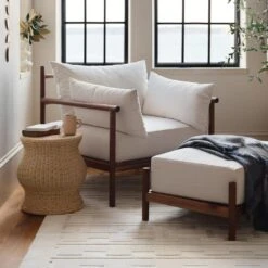 A laid-back lounge chair with effortless style, this wicker chair is crafted from locally-sourced rattan that’s meticulously woven together and wrapped around a steel frame for extra durability. Designed with a sculptural frame, this piece doubles as a modern art piece – style two together as a pair or add an ottoman for a high impact look.