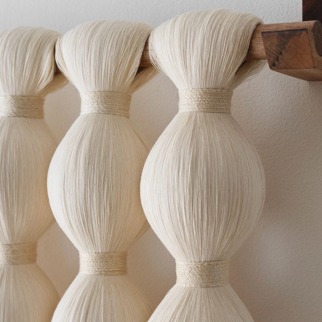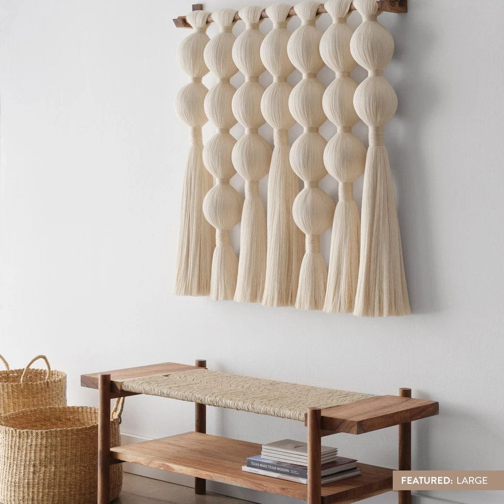 Invoking a sense of calm and tranquility in a way that most wall hangings don’t, this incredible piece is a true work of art. The expert craftsmanship gives it a museum-like quality – so much so that you’ll want it front and center in any room. It’s that much of a showpiece. A blend of woven raw cotton, natural fiber, paper mache, and dark wood. The result? A piece that’s as beautiful as it is sustainable.