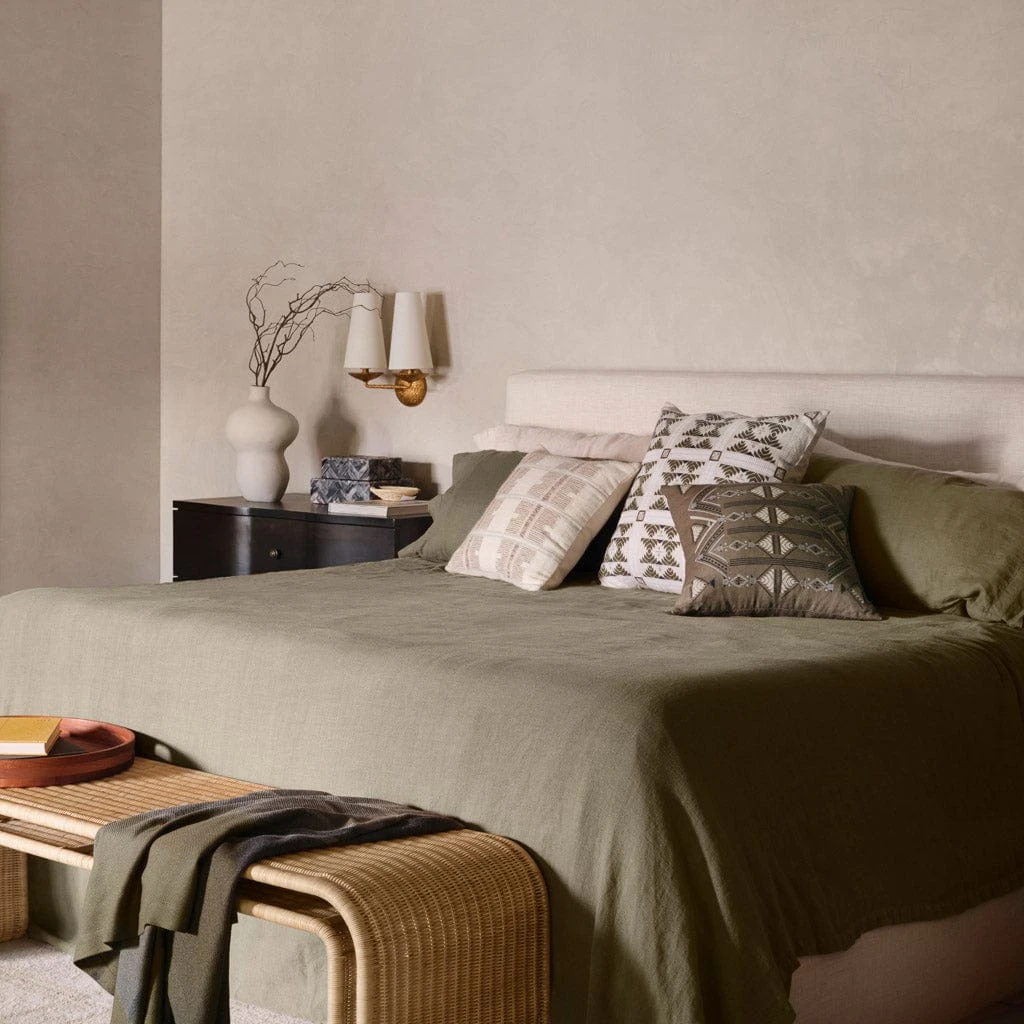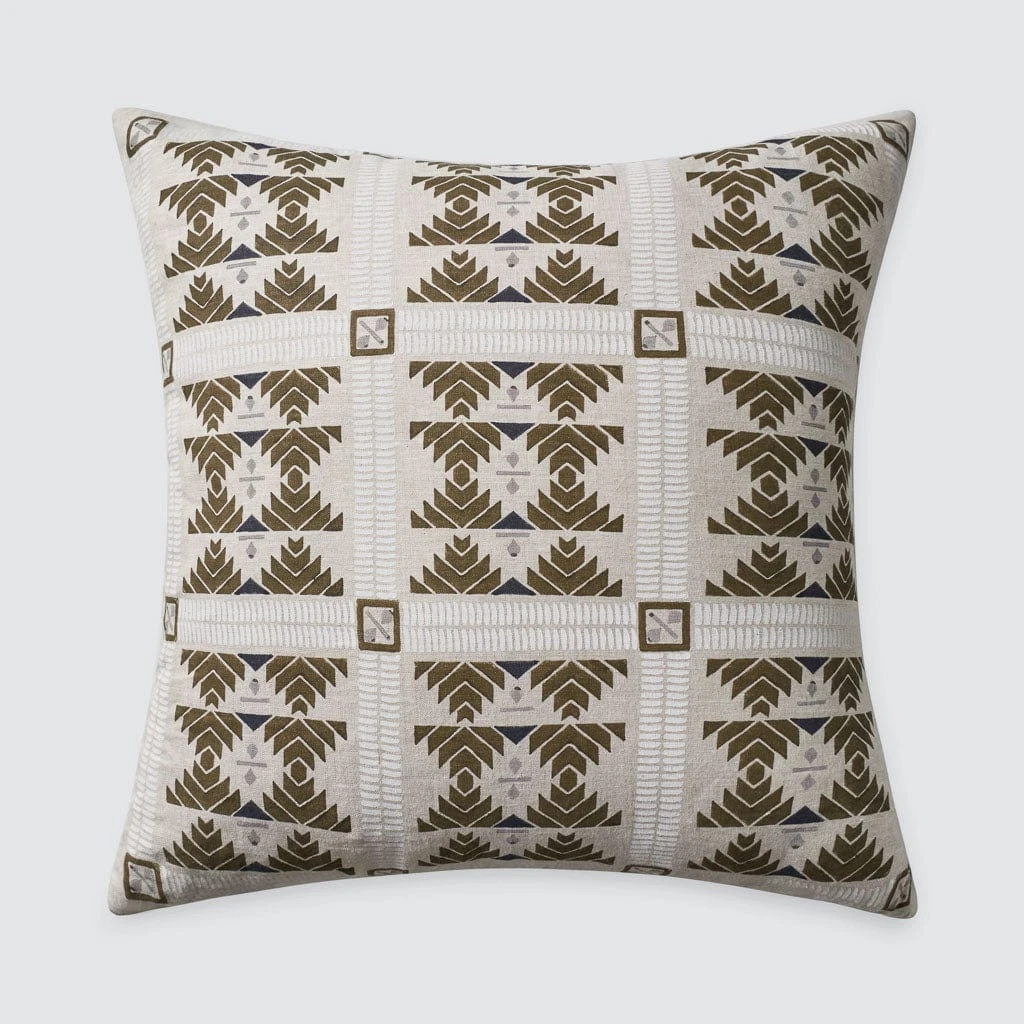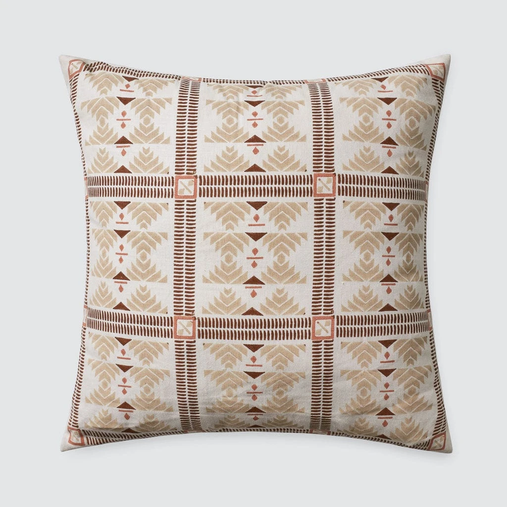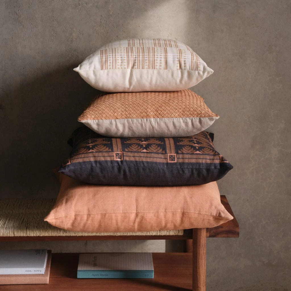 Each pillow is block printed by hand on locally sourced linen by master artisans in Jaipur, India. All made start-to-finish in a fair trade working environment.