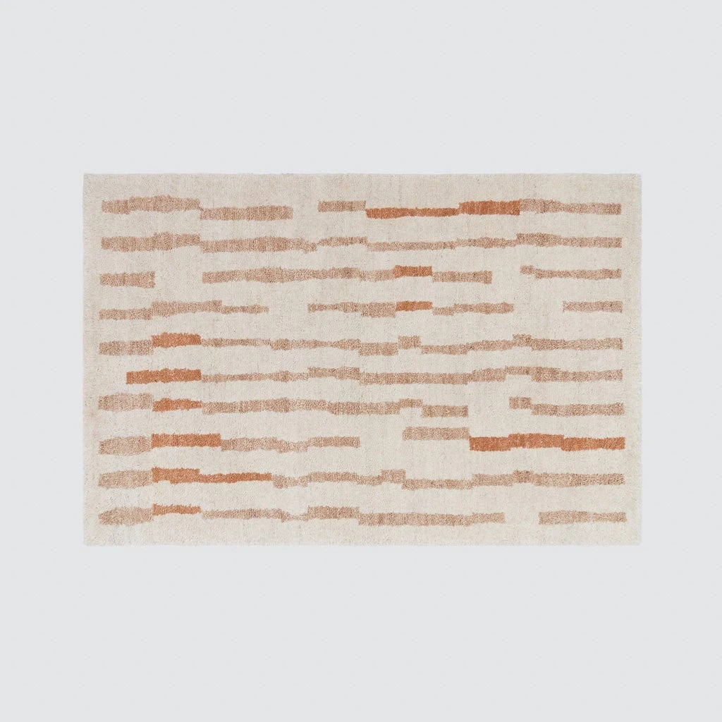 These aren’t your average stripes. Clean, classic, and effortlessly cool, this hand-knotted area rug turns tradition on its head by offsetting a set of vertical lines to create a wave of earth tones. Blending shades of ecru, oat, and rose clay, each rug is crafted for a soft, chunky, kick-off-your-shoes texture.