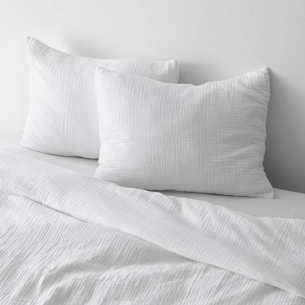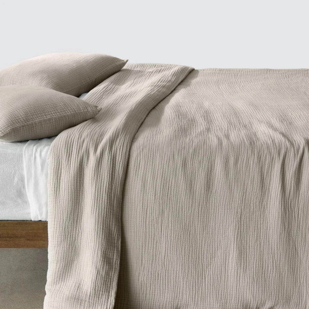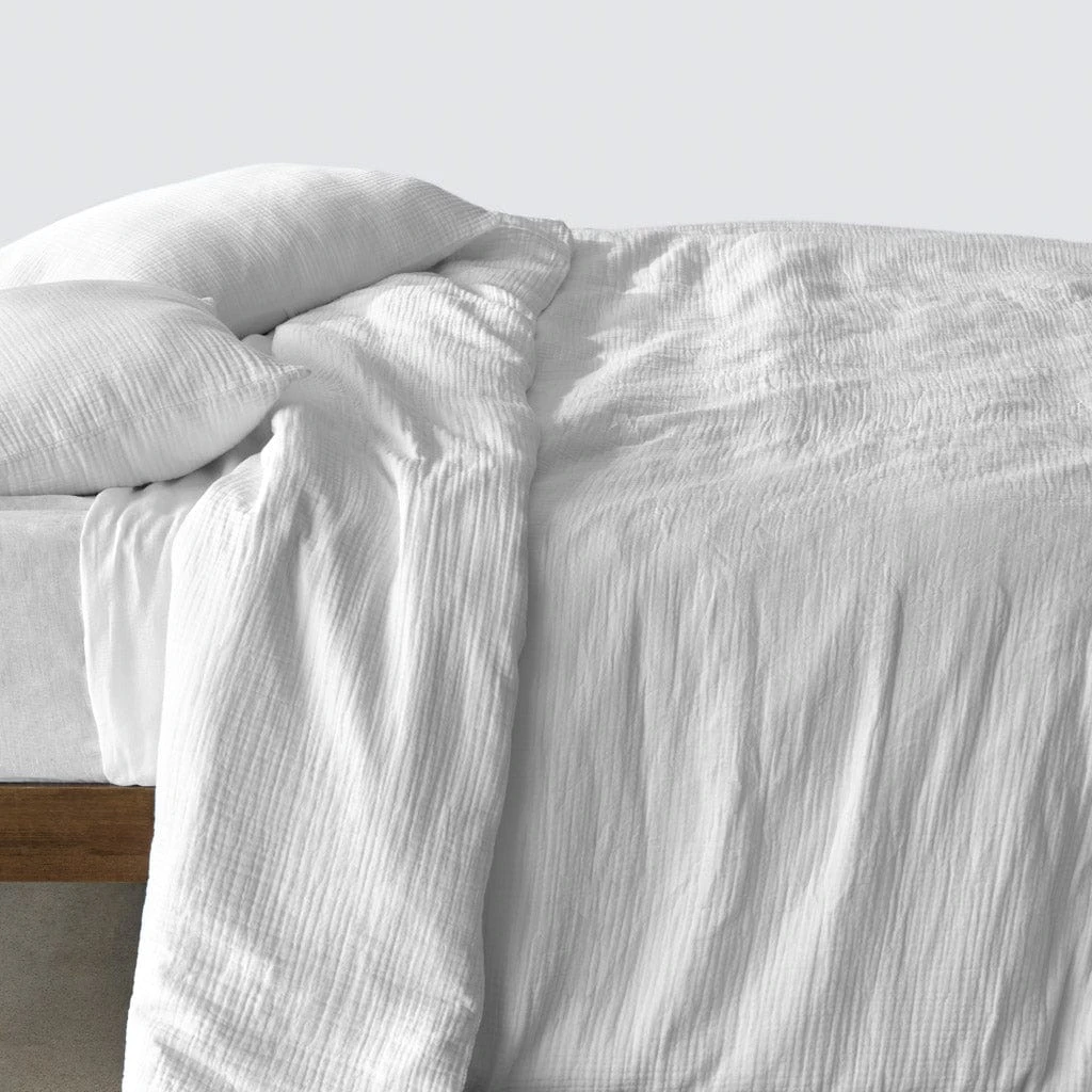 Made with four layers of airy cotton, this soft gauze bedding is extra fluffy and perfectly textured for a relaxed, effortless look. Lightweight and breathable, it’s the ideal layer for creating an extra comfy, cozy-up bed. For the ultimate laid-back style, pair with our stonewashed linen sheets.