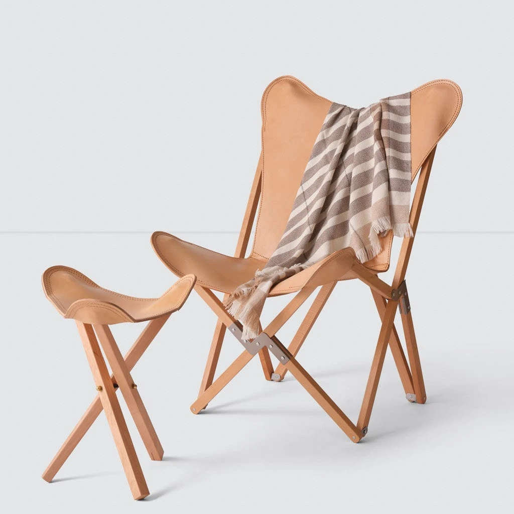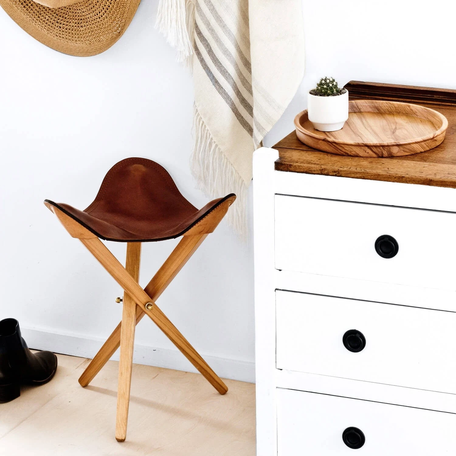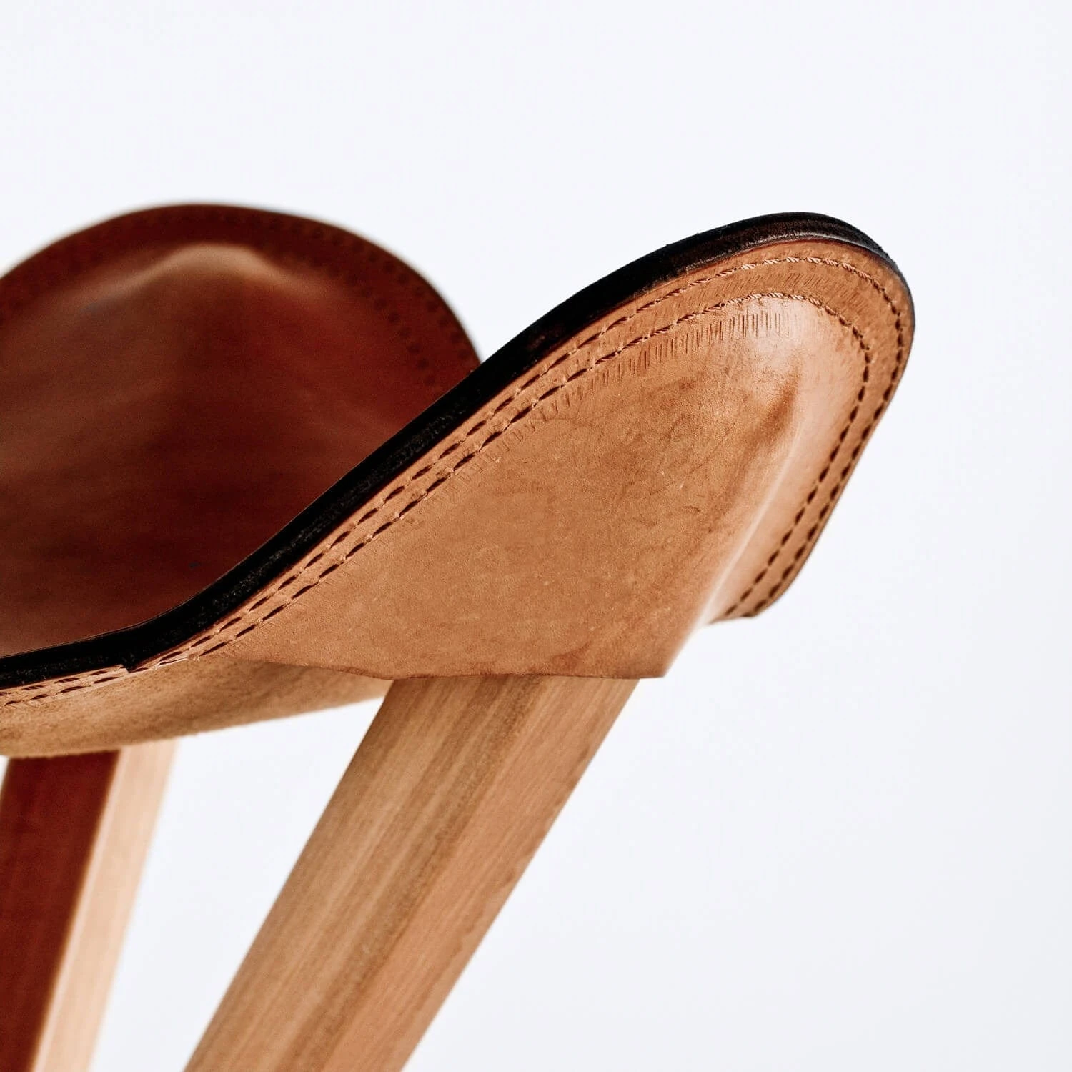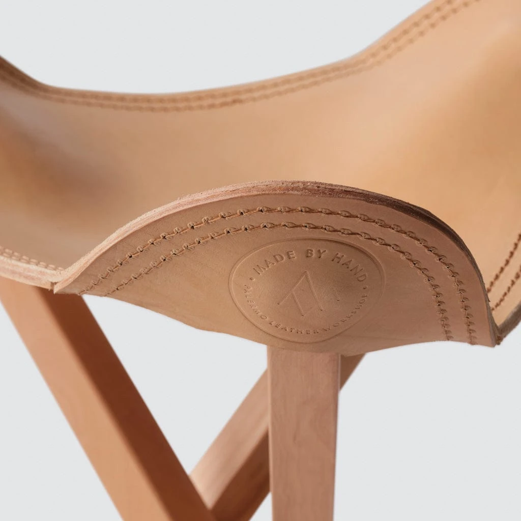 This little guy was designed to complement our Palermo Tripolina Chair. The triangular cover is made of thick 100% Argentinian polo saddle leather that, like a fine wine, ages beautifully. All hand-dyed and stitched in a small workshop in Buenos Aires.