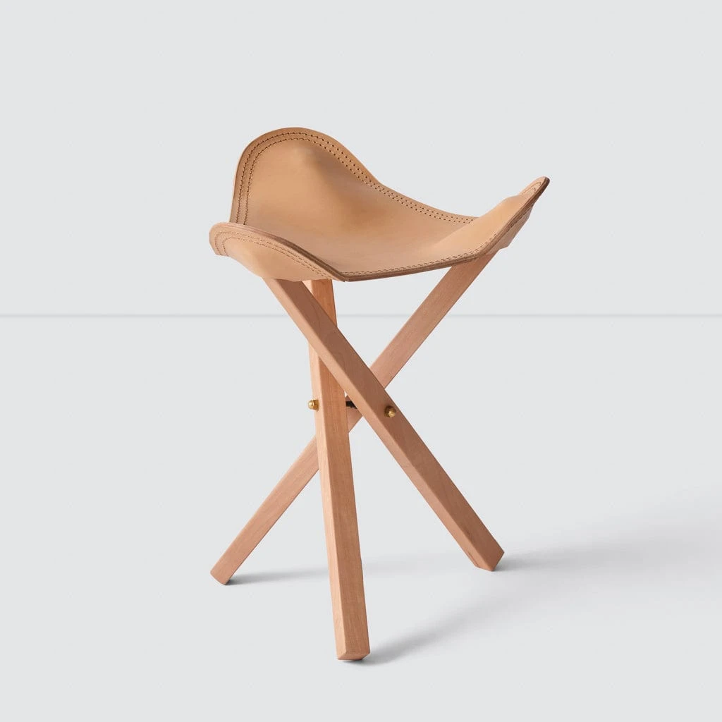 The supporting frame is hand-carved from high quality guindo wood, a lightweight but incredibly durable timber, and assembled with brass hardware. It folds up into a matchstick profile, making it great to take on adventures or move around as an extra seat in small apartments.