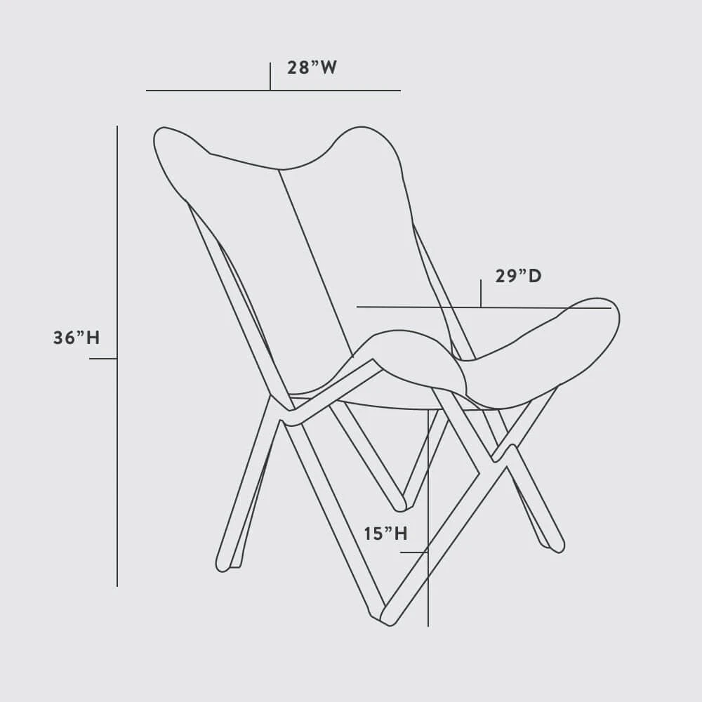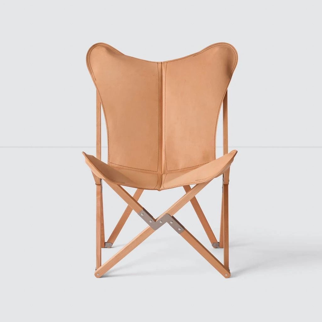 Our Palermo Tripolina Chair’s cover is made of thick 100% Argentinian vegetable-tanned polo saddle leather that, like a fine wine, ages beautifully. All hand-dyed and stitched in a small workshop in Buenos Aires. The supporting frame is hand-carved from high quality guindo wood, a lightweight but incredibly durable timber, and assembled with iron hardware. Its compactness when folded makes it easy to take along on any adventure, without suffering style or comfort.