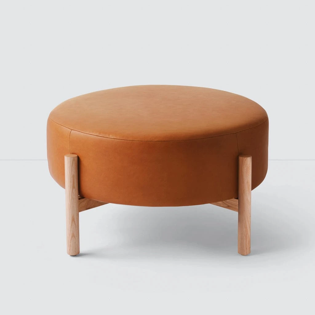 Whether styled as a bit of extra seating or just a place to rest your feet, this versatile round ottoman adds a luxe, modern accent to any space. Available in rich leather and crisp linen, each piece is crafted with a sturdy, lightweight frame of ash or walnut.