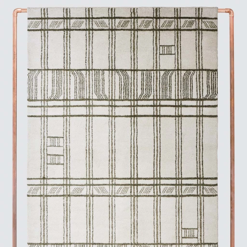 More luxe than a traditional flat-weave, this elegant area rug is hand-knotted for a soft, extra plush texture that invites you to kick off your shoes. Crafted to be passed down for generations, this piece blends traditional patterns for a globally-inspired aesthetic. Available in both olive and sand.