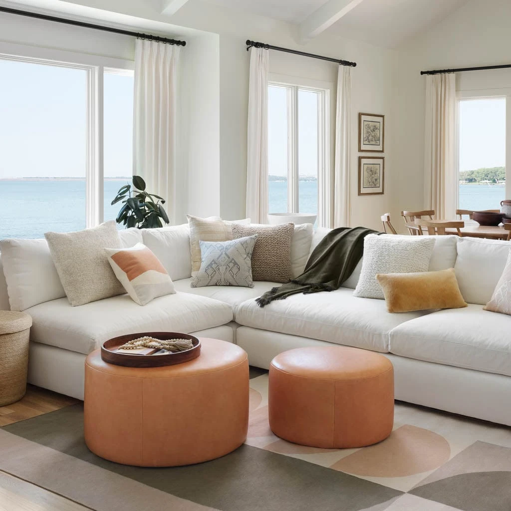 Torres Round Leather Ottoman – Medium & Large
