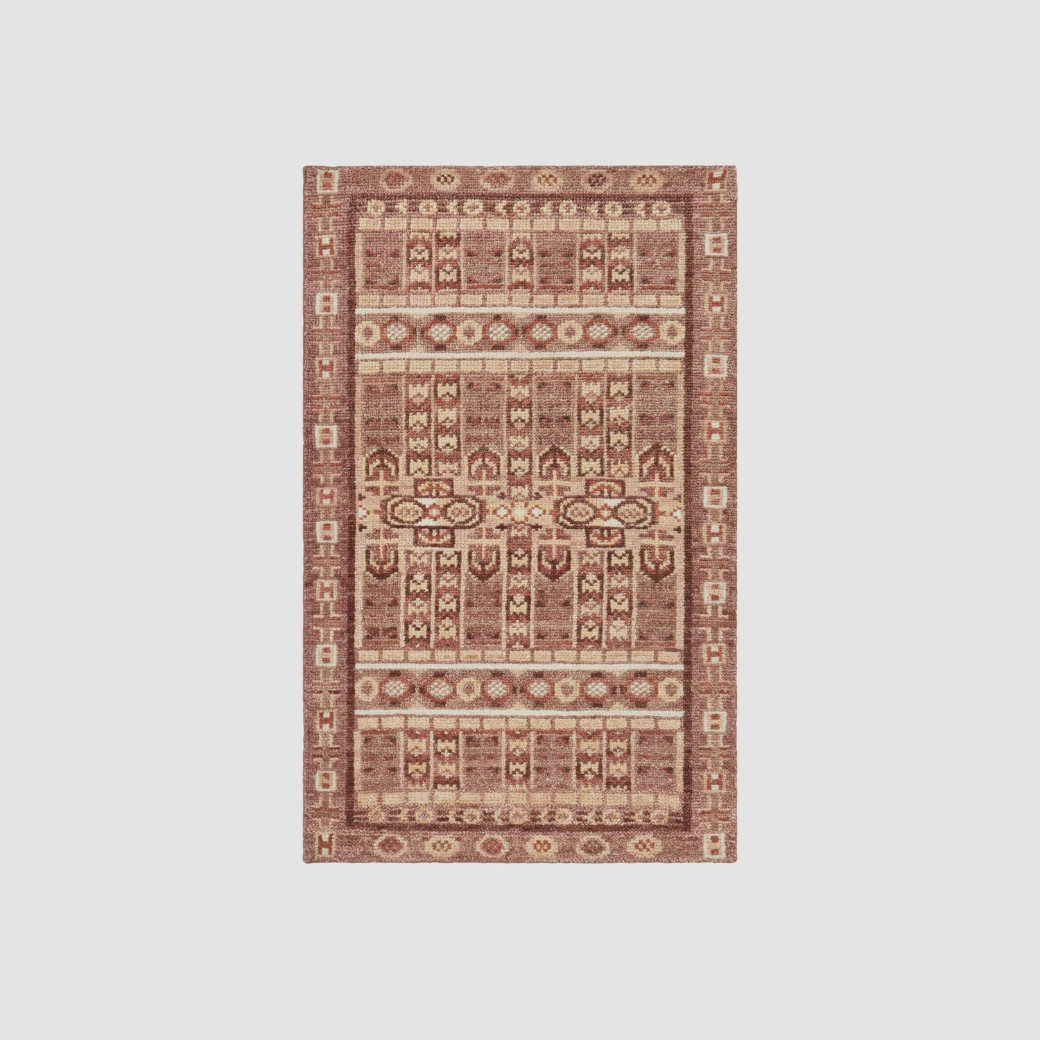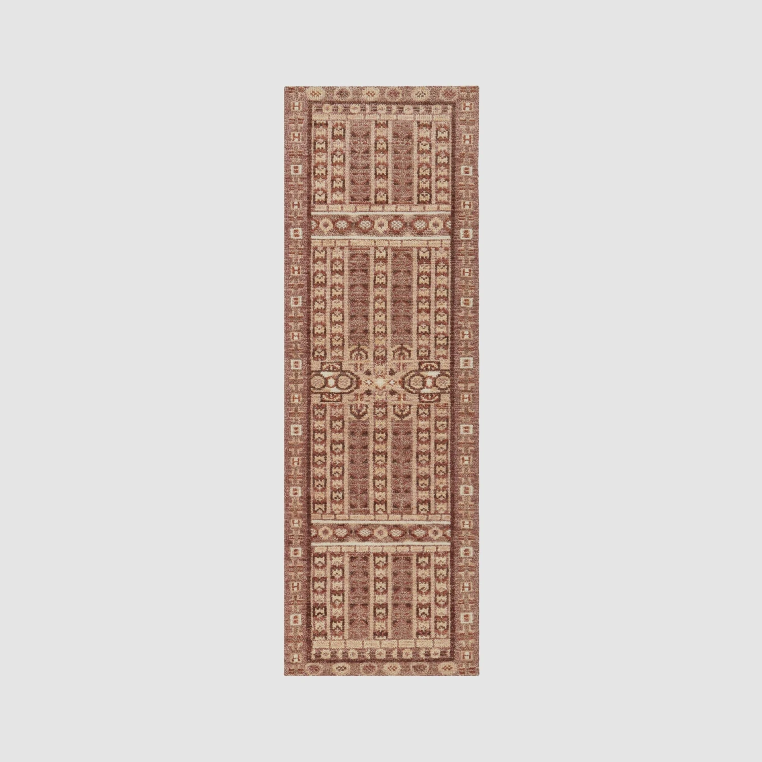 Meet this beautiful accent rug, hand-knotted with a stunning array of traditional patterns from India. Small, delicate blocks build to create stripes that are broken up by medallions, all set against warm shades of mulberry and rich currant. An effortless way to add depth and color to your space, this accent rug is perfect for your entryway or home office.