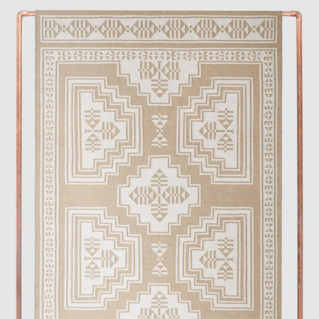 Mixing bold, geometric patterns with statement hues, this stunning area rug is inspired by the cascading staircases found in monuments and sacred sites around India. Style it in a bedroom, living area, or dining room – anywhere it goes, this flatweave area rug is sure to make a statement.